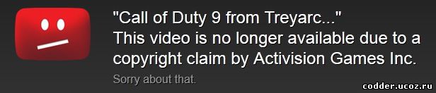 4) Не так давно один пользователь зарубежного форума выложил видео с якобы геймплеем Call of Duty 9 на Xbox360. Мало кто придал этому значения,но неожиданный ход связанный с удалением видео из-за нарушений авторских прав резко поменял отношение к нему. К сожалению у нас нет этого видео,но есть факт (изображение) подтверждающий наши слова:
